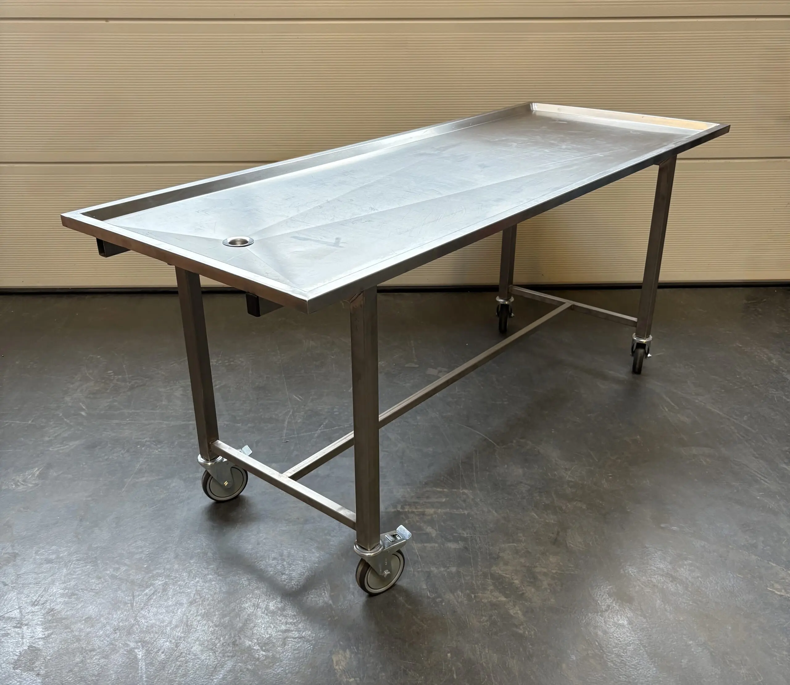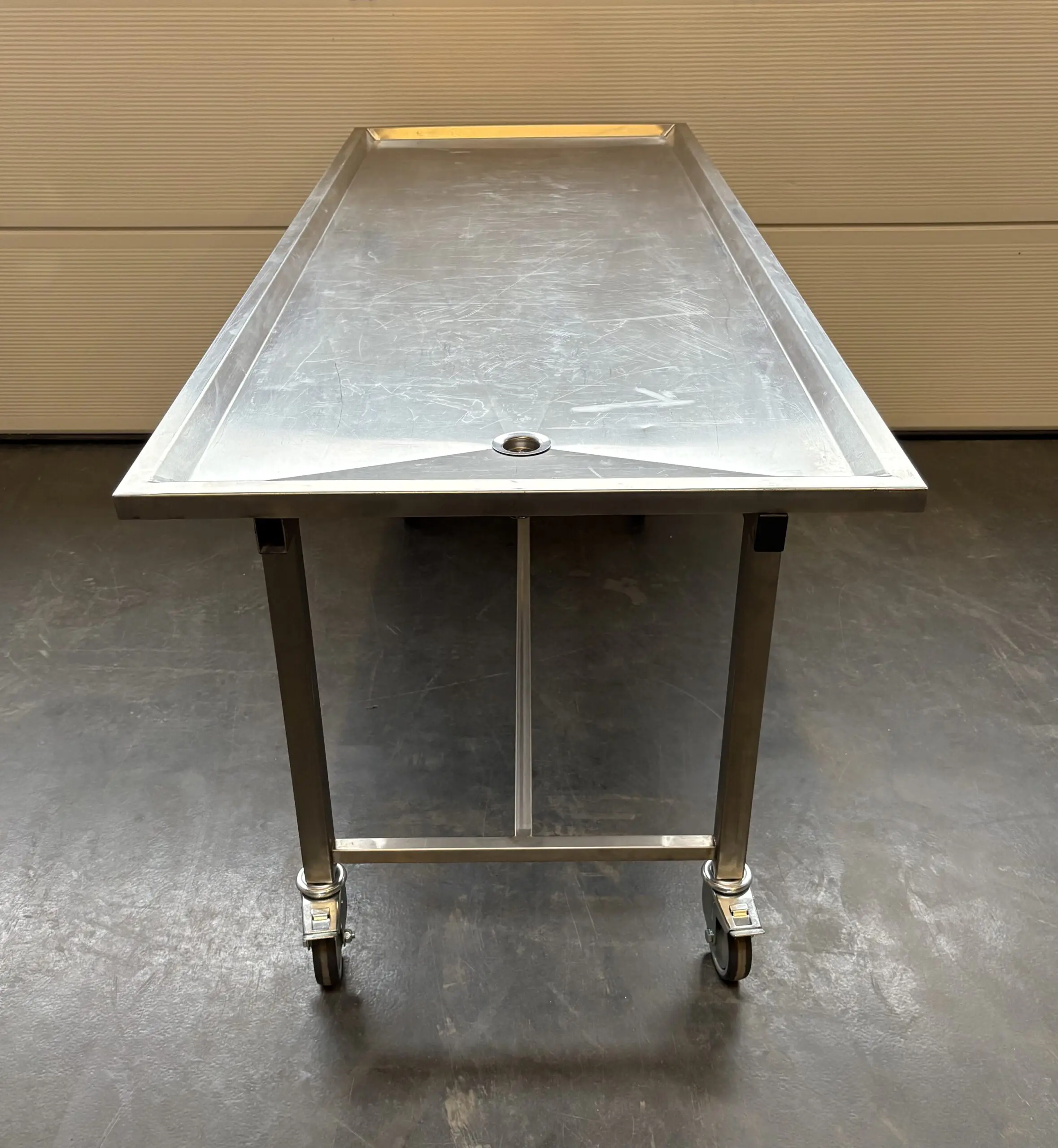 Verzorgingstafel met vast onderstel. Geheel gemaakt in RVS met degelijke constructie.